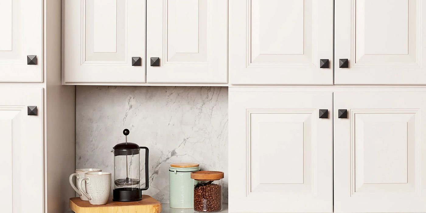 Estilo de puerta/cajón : Panel elevado de 5 piezas con superposición completa, cajón de losa con superposición completa